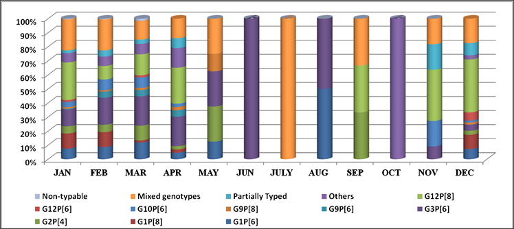 Figure 1. Seasonality of rotavirus strains in children < 5 years old hospitalized with acute diarrhoea in Enugu, Nigeria: 2011-2016.