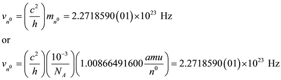 , ratio we use as a dimensionless number, is that scaled by the annihilation frequency of the neutron. This ratio is an invariant, independent of initial physical units utilized since it is by a single natural unit. The other units are 1 and drop out. Any single physical unit could be utilized, but Hertzian frequency (Hz) was arbitrarily chosen since the whole physical system can logically be evaluated as a unified quantum spectrum.