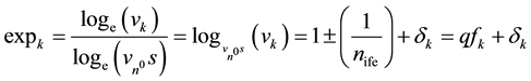 cific value, Equation (2). The known exponent, expk, of a fundamental constant is the ratio of the loge of the fre-
