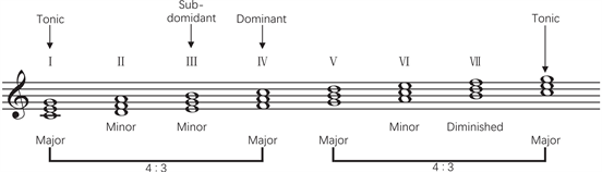 The common major chord (do-mi-so-do) has the ratio , while the common minor chord (do-miç-so-do) has the ratio (Figure 3).