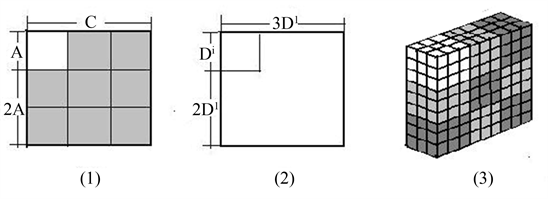 Because x, y and z are larger than 2, firstly, the three powers in the Formula (1) are replaced by the areas of three rectangles that are , as (2) of Figure 1. If the Equation (1) is true, the area sum of rectangles should be equal to the area of rectangle of .
