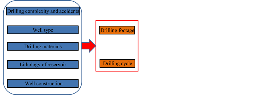 Take the drilling cost of some oilfield in China for example. It is visible through the data analysis that the direct factors affecting the drilling cost include well type, casing program, lithology of reservoir, drilling footage, drilling cycle, drilling materials selection(casing, cement, drill bit, drilling fluid, etc.), drilling complexity and accident, etc. (Figure 2)