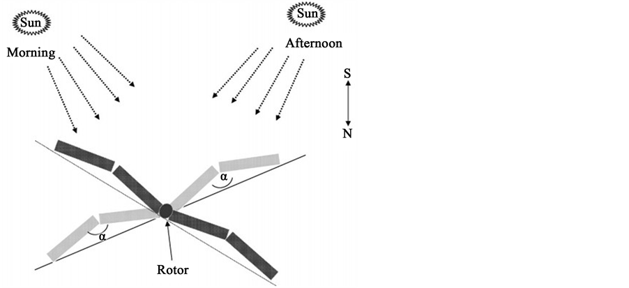 Figure 11. Position of PV modules in the morning and in the afternoon [42] .