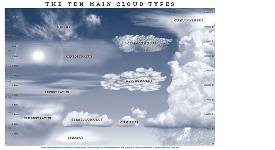 Table 2. Classification of clouds based on their altitudes for different polar regions (Ahrens, 2009, NOAA―National Weather Service, website) [10] .