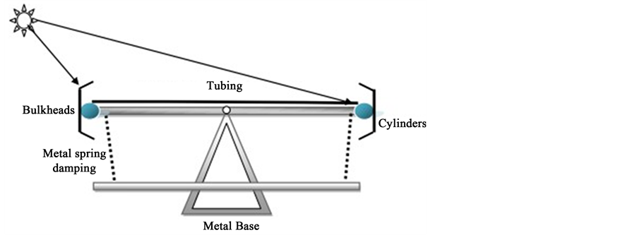 In 2004 researchers Clifford and Eastwood developed a low-cost passive tracking system for equatorial regions with an efficiency gain of 23% over traditional fixed PV modules. In this paper, it is possible to observe the benefits of tracking and its high potential for applications in various geographical locations. However, the proposed tracking system considers only one axis regarding the sun’s apparent motion; thus, this system cannot compensate for the variations caused by the latitude angle along the changes of seasons. The design of passive tracking mechanism incorporates two bimetallic strips (bulkheads) made of aluminum and steel, positioned on a wooden structure, symmetrically on both sides, with a central horizontal axis, similar to the drawing shown in the Figure 1 [15] .