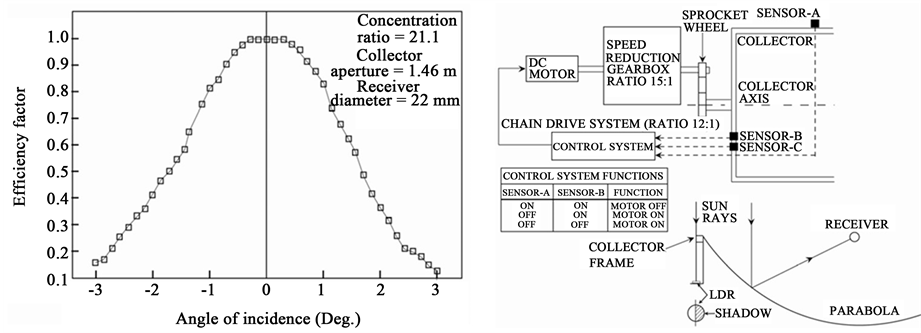 Figure 3. (a) Efficiency factor vs. angle of incidence; (b) Tracking mechanism conceptual diagram [21] .