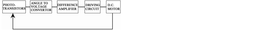 zontal plane and four minutes in the vertical plane. As shown in Figure 4, the tracking system was composed of two identical subsystems, one for each axis, with each subsystem consisting of two adjacent phototransistors. In tracking mode, the difference in voltage signals from the phototransistor is amplified and used as a command signal to trigger the collector around its axis until the voltage difference is reduced to zero, indicating that the collector is perpendicular to the incidence of solar rays. It has been shown that the tracking system had a power consumption of only 0.5 W and increased production by about 75% in comparison with a fixed collector of equivalent dimensions [22] .