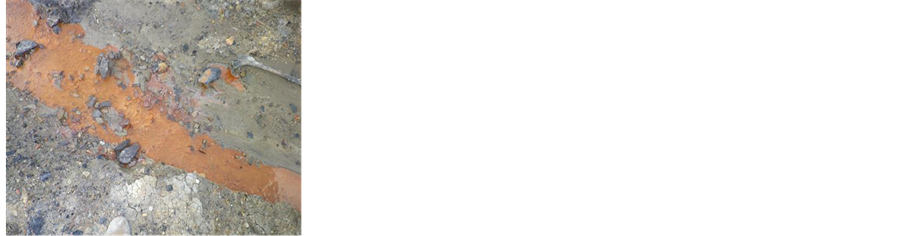 extracted Fe and S by HNO3 is slightly larger in area I than that in area II in Table 1. There is not a large difference in the amount of extracted Fe and S with HF between the areas. The amount of extracted Fe and S with HCl is larger in area I than that in area II, especially the amount of extracted Fe. This indicates that there is a large amount of readily-soluble Fe and S in area I in comparison with that in area II. Red-brown precipitation which was considered ferric hydroxide was observed in waste water from the waste dump in area I as shown in Figure 2 while there was not such a precipitation in discharged water from the waste dump in area II [21] . Additionally, the possibility of occurrence of AMD over the long term may not be varied between the areas since there was not a large difference in the amount of PAF and Fe and S which exist as sulfide minerals contributing to AMD for a long term by gradual dissolution. A larger amount of soluble Fe and S in area I than that in area II resulted in red-brown precipitation in waste water from the waste dump in area I, indicating that the existing form of Fe and S has to be taken into account in discussion of occurrence of AMD over time.