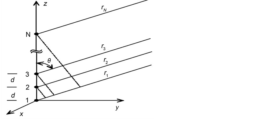 These arrangements are associated with different level of complexity in design and implementation. A number of investigations have been carried out in order to determine a suitable arrangement for ad hoc network. Among these antenna array arrangements linear array is the simplest one and we used it for this investigation. In linear arrangement all antenna array elements are aligned along a straight line. We assume that antenna elements are equally spaced by a distance d. We also assume that the far-field condition is satisfied (i.e.,