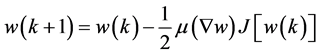 The LMS algorithm, proposed in [15] , is a gradient based algorithm. It is assumed in this algorithm that there exists a quadratic performance surface. The performance surface is in the shape of elliptic paraboloid having one minimum. A gradient algorithm has been used to establish the minimum condition. An iterative technique called the method of steepest descent has been used in order to determine the gradient of the cost function. By using the algorithm, the weights of the antenna elements are determined by using LMS method introduced in [16] [17] .