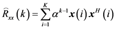 where α is the weight factor. The advantage of the RLS algorithm over SMI is that it is no longer necessary to invert a large correlation matrix. Moreover, the RLS algorithm converges much more quickly than the LMS algorithm.