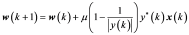 One of the limitations of CMA algorithm is its slow convergence time. The slow convergence of CMA algorithm limits the applicability of this algorithm in ad hoc network environment. Dynamic topology and hostile channel condition of ad hoc network demand a faster algorithm that converges very quickly. The algorithm proposed in [19] is a faster version of CMA algorithm. This algorithm is called Least Square Constant Modulus (LSCM) algorithm. This algorithm is based on autoregressive estimation based on a least square minimization. In this algorithm the cost function is defined as