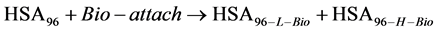 HSA96 and their modified versions with biotin attached, HSA99-M(x:1), HSA99-NS(x:1), HSA96-M(x:1) and HSA96-NS(x:1) are summarized in Table 1.
