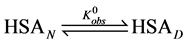 In order to provide an interpretation of the thermodynamic measurements of the two forms of HSA and consequences of biotinylation of them, consider the following simple model of thermal denaturation of HSA written as the following reaction,