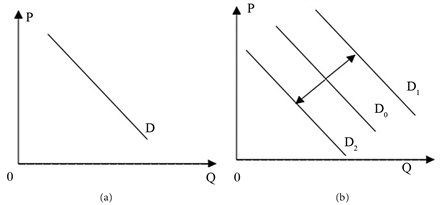 Figure 1 real estate demand curve. The curve represents the relationship between the demand for real estate and its price, the horizontal axis Q represents the real estate demand, the vertical axis P represents the real estate price. Assuming other conditions do not change, when the real estate prices decline, real estate demand rises, as shown in Figure 1(a) below. Assume that other conditions also change, taking the change of consumer income as an example. When the real estate price drops, the demand will no longer move up and down the curve, but the whole demand curve will shift. By observing Figure 1(b), when D0 is the initial expression curve, curve D0 shifts upward to curve D1 with the increase of consumer’s income level. Similarly, when the income level of consumers declines, Left lower position to the curve D2 position [13] .
