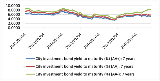 Figure 1. City investment bond yield to maturity of different Rating body. Source: Wind.