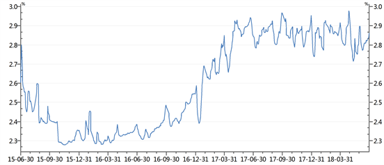 Take the Shanghai Interbank Offered Rate (SHIBOR (%): 1 week) as an example. The trend is as follows.