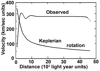 Many published works [1] [2] [3] display star orbital velocity profiles, as a function of the distance from the galactic center, for a number of galaxies. They all show that the orbital velocity of the stars in the galactic disk does not fall with distance from the galactic center as stipulated by the current theories of gravitation. In some galaxies, the orbital velocities even increases with the distance from the galactic center. Figure 1 displays the observed orbital velocity profile of the stars in the Milky-Way galaxy, together with a typical Keplerian rotation curve. The observed orbital velocity of the stars is much too fast to the gravitational pull and or the spacetime curvature, produced by the content and distribution of visible matter, to hold the Milky-Way together.