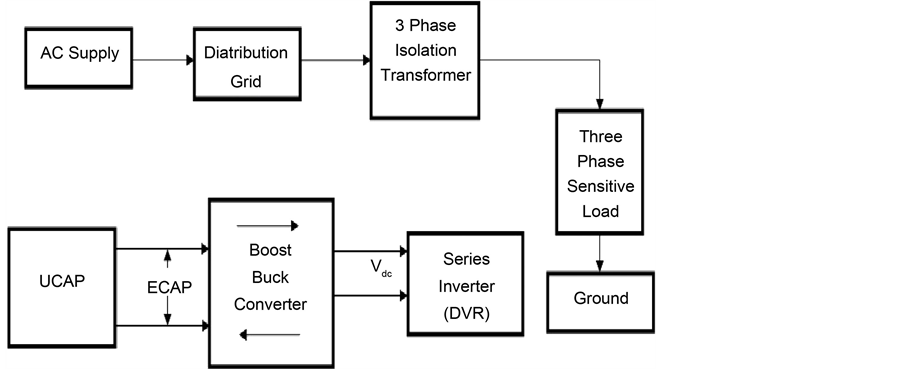 The block diagram of the integrated UCAP-DVR connected distribution system is shown in Figure 1. It consists of DVR, a bidirectional DC-DC converter connected with UCAP energy storage device. DVR is a Voltage Source Inverter (VSI) which is put