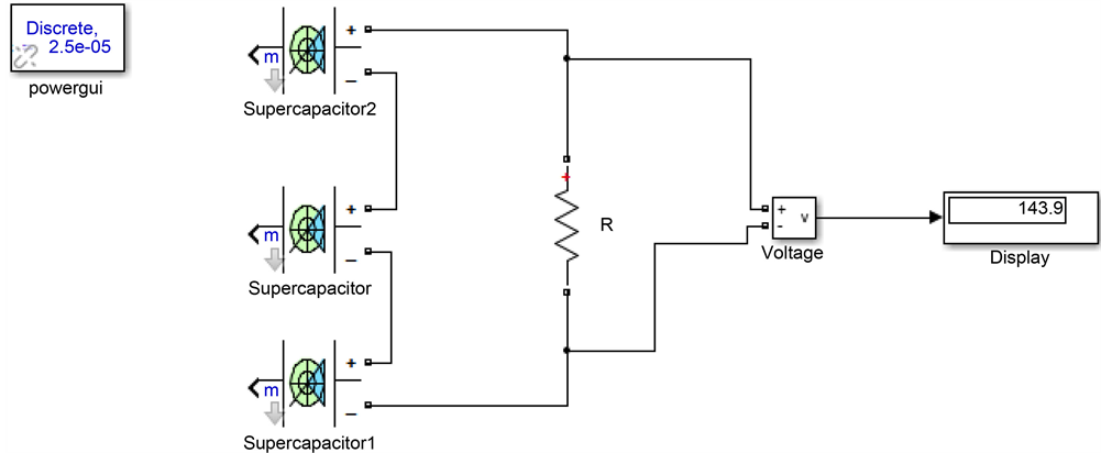 In this paper, three UCAP, each of 48 V with 165 F capacitance, are connected in series to obtain the output voltage of 144 V. This model is simulated in Matlab is shown in Figure 3.