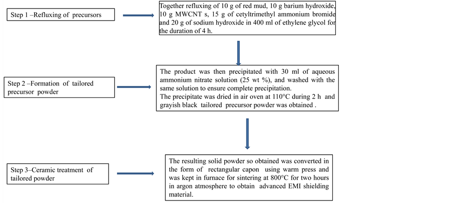 The various steps involved in the developed novel process for synthesis of advanced ARMC shielding materials shown in Figure 1.