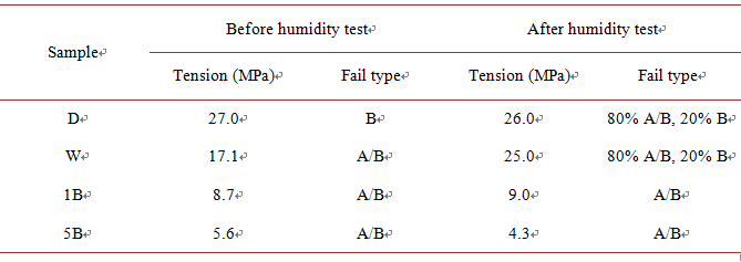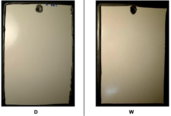Table 3 shows the results of adhesion, before and after the humidity condensation test for the different samples of painted carbon steel. It is possible to observe that the ten-
