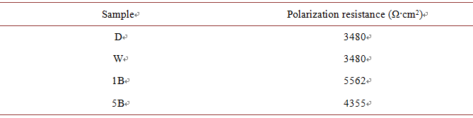 Table 4. Polarization resistance of carbon steel in 3.5% NaCl solution, after one hour of immersion.