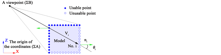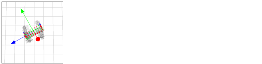 Here, p is the position vector of the point clouds measured by LRF. q is the position vector of the point clouds prepared for a model. N is the number of the point group used by a model. Δe is the distance between the corresponding points. m is the number of times of the repeat calculation. ki is the number which corresponds to a model point. In this paper, to correspond to an occlusion problem, every time the posture of the model is changed, the number of the used model points N is changed such as Figure 5. Because the number of the points N seen from LRF changes with a change in the position of the model and posture. It’s difficult that ICP algorithm corresponds to this data which doesn't have many overlap points [29] . A used point is judged by the following Equation (2).