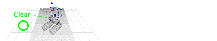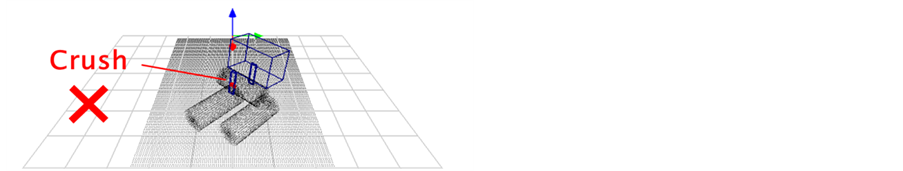 It’s necessary to consider collision problem with the objects besides the target object. Collision problem can’t be avoided by the situation that a lot of objects are put miscellaneously. Interference model of the robotic manipulator is used to collision problem such as Figure 9. An example of judgment of interference is shown on Figure 10. A finger of the robotic hand and a lower object are interfering on Figure 10(a). The result which evaded interference is shown on Figure 10(b).