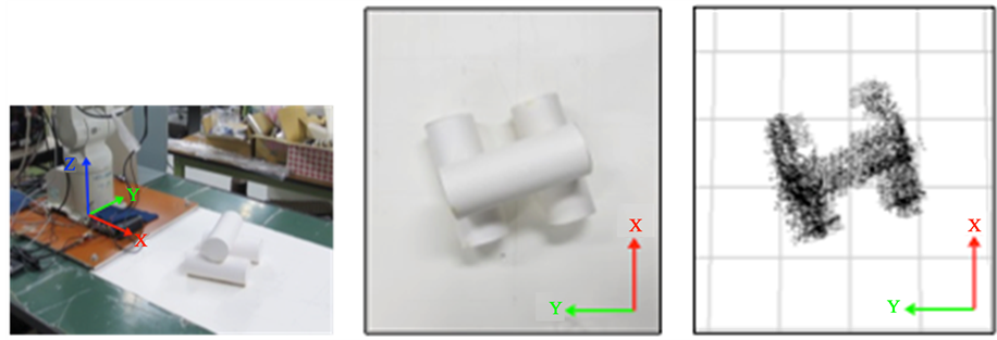 In this phase, the posture and the position of the object is presumed using the 3-D point clouds measured in PHASE 1. This system is premising that the size of the object and the shape are known such as Figure 4. A near point is searched based on ICP algorithm between the model point group and the measurement point group of