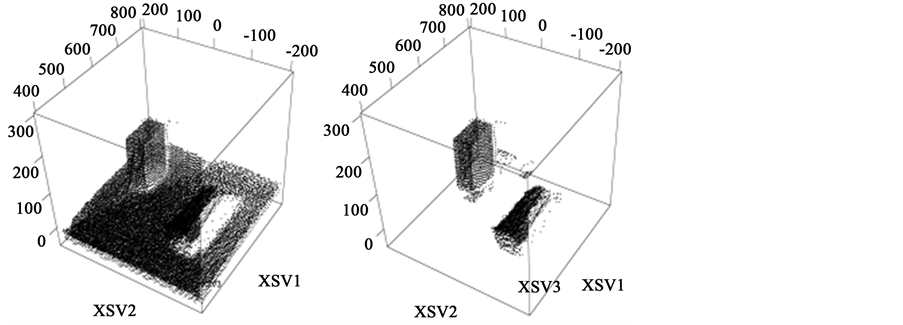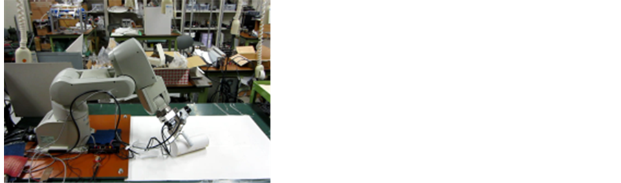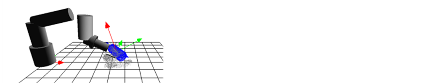 LRF is being installed on the wrist of the 6-DOF robotic manipulator such as Figure 1. The target objects are measured while changing a viewpoint freely using the 6-DOF robotic manipulator. This measurement is performed from the various directions to reduce an occlusion problem [28] . This scanning operation can generate information on the 3-D environment which consists of 3-D point clouds such as Figure 3.