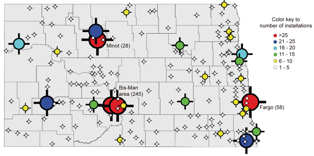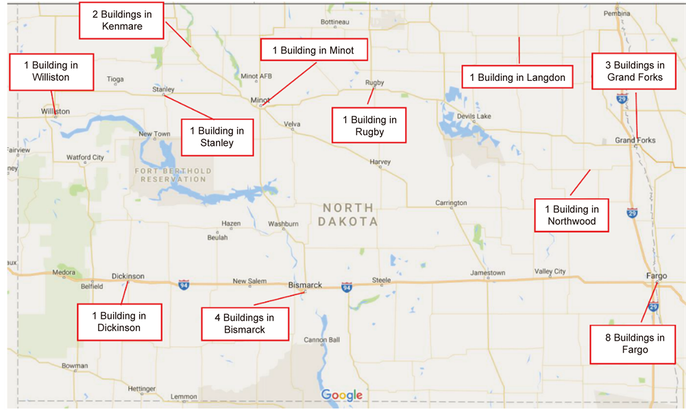 Figure 1. Locations of geothermal installations in North Dakota [40] .