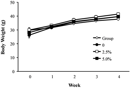 The effect on body weight by administrating rice flour was shown in Figure 1. The effects of rice flour on body weight were not recognized in this data.