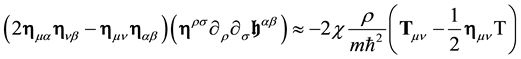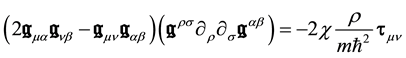 is proportional to the energy-impulsion density tensor of the particle; it is the source term of the gravitation field. In the classical, i.e. non quantum, limit, the correspondence
