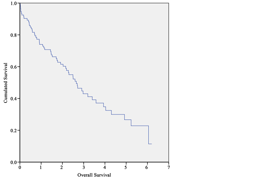 In our experience, in the multivariate Cox Regression analysis the following variables influenced overall survival: non scheduled admission into hospital (HR = 2.316; 95%CI: 1.298 - 4.133; p = 0.004), non surgery management (HR = 4.928; 95%CI: 1.815 - 13.385; p = 0.002), and incidence of late complications (HR = 4.629; 95%CI: 1.279 - 16.750; p = 0.020). Previous experiences had shown that postoperative morbidity and mortality were associated with other patients and surgery related factors rather than exclusively to the patients’ age [4] - [9] . As an example of colorectal cancer surgery, we learned that the presence of at least two significant co-morbi- dities has a substantial effect in patients older than 70 years, resulting in a mortality of 16.2% when compared with 8.6% in a younger cohort [6] [27] . Emergency surgery even added up the risks to 41% in patients aged over 80 years in the Dutch nationwide population-based study [8] . One-year postsurgical mortality was even 51.2% in patients aged 80 years and older in an English cohort, indicating that age was an independent determinant of mortality in risk adjusted regression analyses [9] .