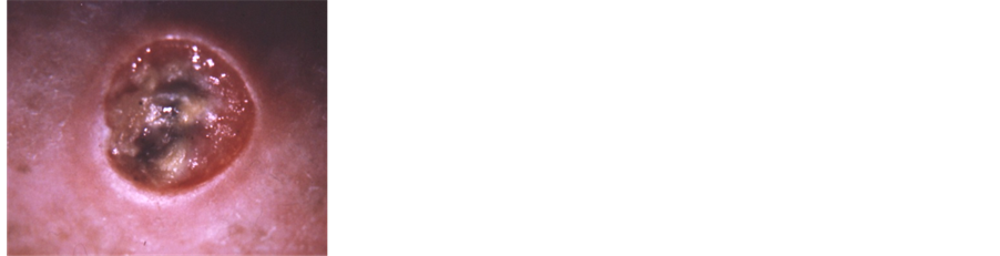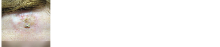 Figure 2(a) illustrates a BCC after radiation therapy, it is clear that there was a recurrence. Several months after the recurrence, the lesion was treated with CuradermBEC5. Figures 2(b)-(d) show the appearances of the lesion during CuradermBEC5 therapy. Some inflammation is observed surrounding the lesion. The lesion progressively reduced in size. After 8 weeks treatment with CuradermBEC5, the lesion was completely ablated (Figure 2(d)). The cosmetic result after CuradermBEC5 therapy was remarkable, despite the previous relapsed radiotherapy treatment.