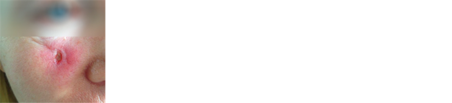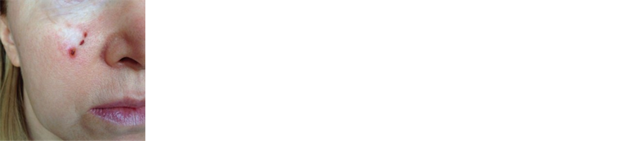A 24-year-old female patient was treated with laser therapy for a BCC close to the right eye. The BCC recurred after laser therapy (Figure 3(a)). The patient then had CuradermBEC5 therapy for 8 weeks. The BCC re-