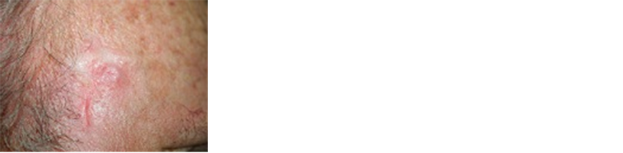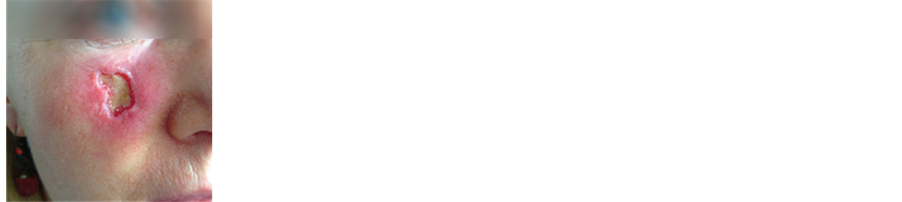Figure 4(a) illustrates a relapsed BCC on the cheek of a female patient after PDT treatment. Figure 4(b) shows that CuradermBEC5 therapy caused massive erosion of the treated lesion. Continual CuradermBEC5 therapy resulted in diminishing sizes of the tumor (Figure 4(c), Figure 4(d)), ultimately resulting in complete removal of the tumor after 10 weeks of treatment (Figure 4(e)). There was moderate scarring at the completion of the CuradermBEC5 therapy.