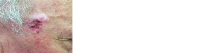 This male patient had previously undergone cryosurgery for a BCC on the right temporal region. Figure 5(a) shows that there was a recurrence of the BCC after cryosurgery. Several months after the recurrence of the BCC, the patient was treated with CuradermBEC5. Figure 5(b) shows that the CuradermBEC5 therapy exposed deep seated tumor cells. Total required treatment period for the complete removal of the entire lesion was 9 weeks (Figure 5(c)). This patient had dyed his hair after completion of CuradermBEC5 therapy.