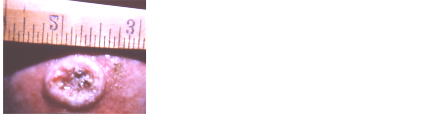 This patient had treated Bowen’s Disease (SCC in situ) on the penis for over 2 years with 5% Imiquimod cream; response appeared initially satisfactory, but the lesion was still present after 2 courses of Imiquimod treatments. Subsequently, the patient elected to treat his Bowen’s Disease with CuradermBEC5. Figure 6(a) shows an in situ SCC (Bowen’s Disease) on the penis that had not been successfully treated with imiquimod cream. Two months after starting CuradermBEC5 therapy the lesion showed minimal response (Figure 6(b)). Marked