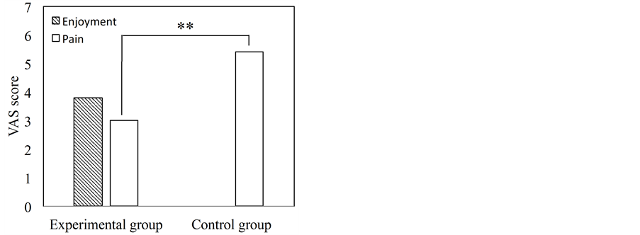 Figure 8. Mean VAS scores for pain and enjoyment. **: p < 0.01.