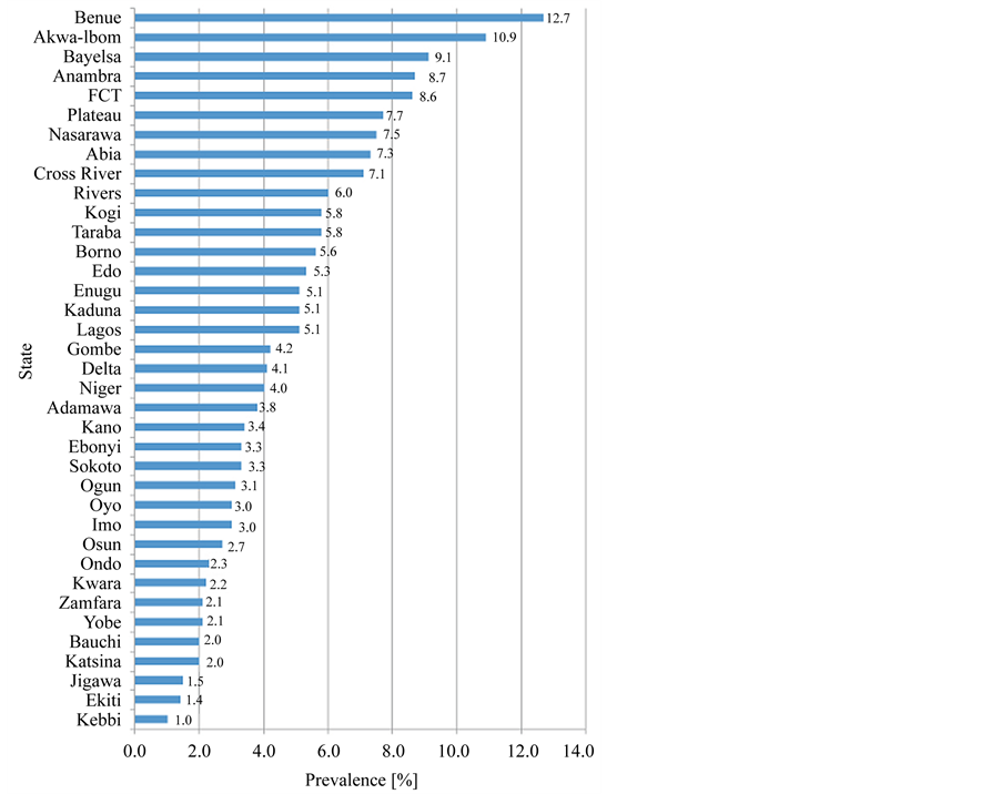 Figure 1. HIV/AIDS infected states in Nigeria. Source: [5] .