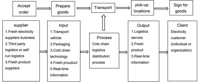 The improvement of fresh electricity suppliers cold chain logistics service quality is for the improvement of the whole process so as to meet the needs of consumers and improve customer satisfaction. The process begins with accepting an order, and ends with customer receiving fresh products. As shown in Figure 1, fresh electricity suppliers cold chain logistics service process begins with accepting orders, after which fresh electricity supplier would provide fresh products, then electric business enterprise self-run logistics or the third party logistics would check fresh products in the supply place, then they would package, load and transport the fresh products by cold chain technology, and carries on the real time information tracking to the entire transportation