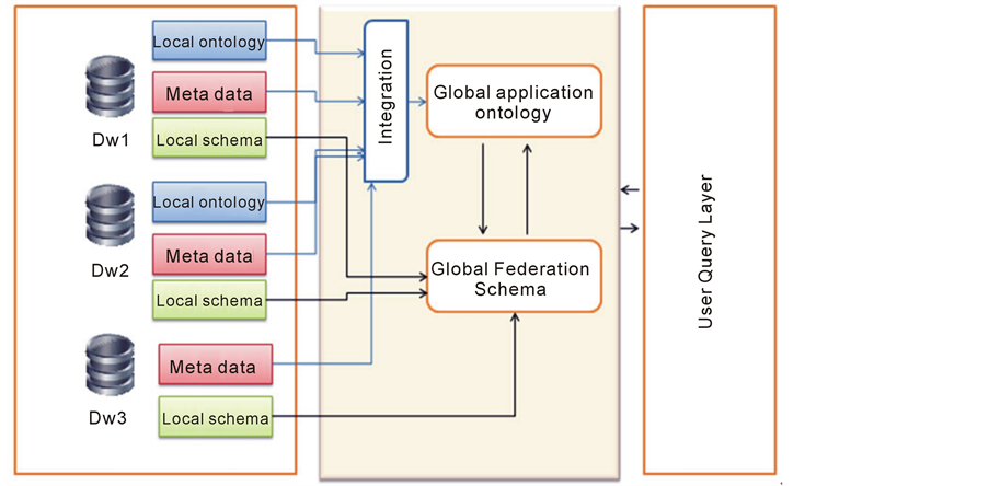 The used system is based on integrated topic ontology in a federated heterogeeous data warehouses, the system architecture is described as bellow: