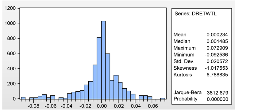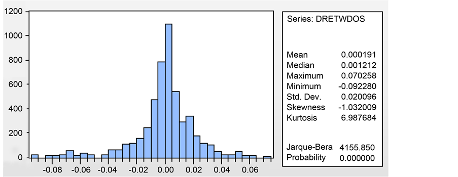 The Figure 1 and Figure 2 showed, no matter which kind of market return is used, China’s stock market returns presented the sharp-peak and fat-tail feature, the skewness was not zero, the kurtosis was close to 6, which suggested that it seriously did not meet the normal distribution. The median and mean were greater