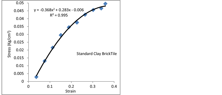 Figure 9. Stress-strain curve behavior for standard clay brick tiles.