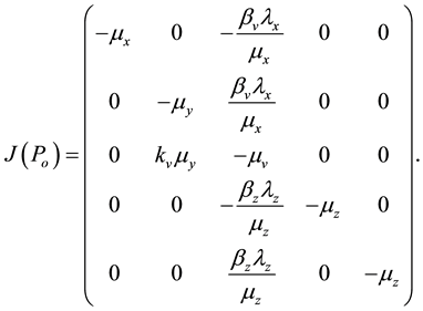 The Jacobian matrix evaluated at the point of trivial equilibrium (2) is given by: