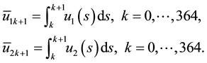 The initial conditions were obtained by running the uncontrolled model from Equation (1) for a period of 365 days. Note that the second and fourth equations are decoupled.