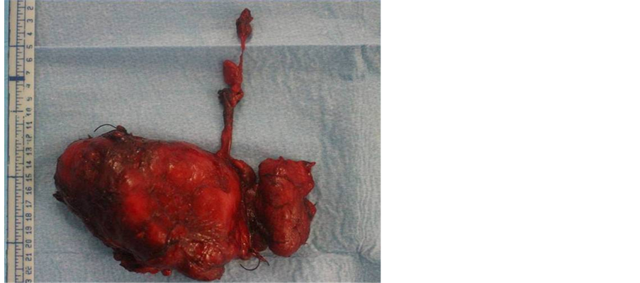 Figure 1. Operative specimen of a thyroid with its pyramidal lobe.