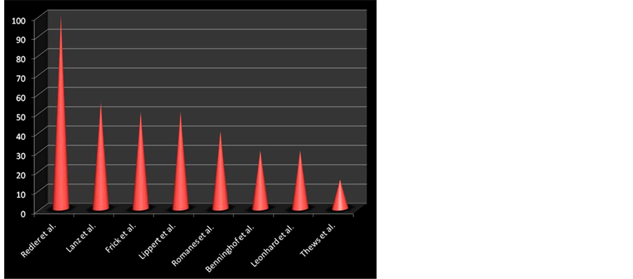 In literature all kinds of information about thyroid abnormalities can be found: in Anatomical texts, the pyramidal lobe rate stands between 15% and 75% (Thews [2] : at least 15%; Leonhard [11] : 30%; Benninghoff [12] : 30%; Romanes [13] : 40%; Lippert [14] : 50%; Frick [10] : 50%; Lanz [9] : >50%).